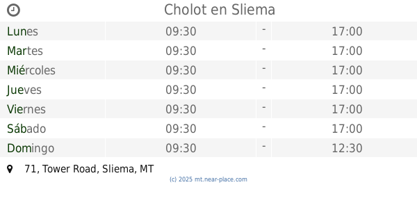 | Martes | abierto 24 horas | |||||